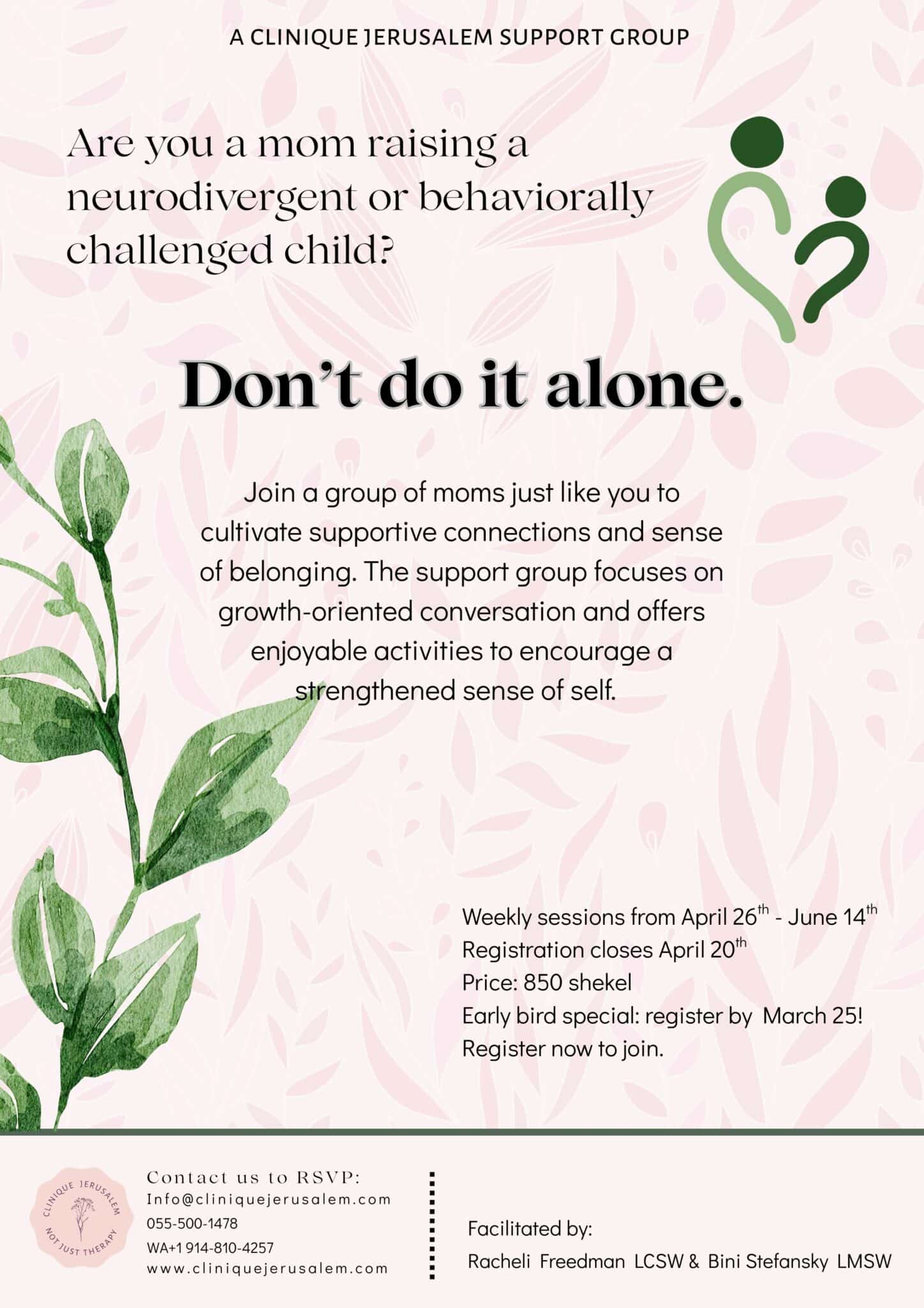 Support group for moms of neurodivergent or behaviorally challenged children. Join a group of moms just like you to cultivate supportive connections and sense of belonging. The support group focuses on […]