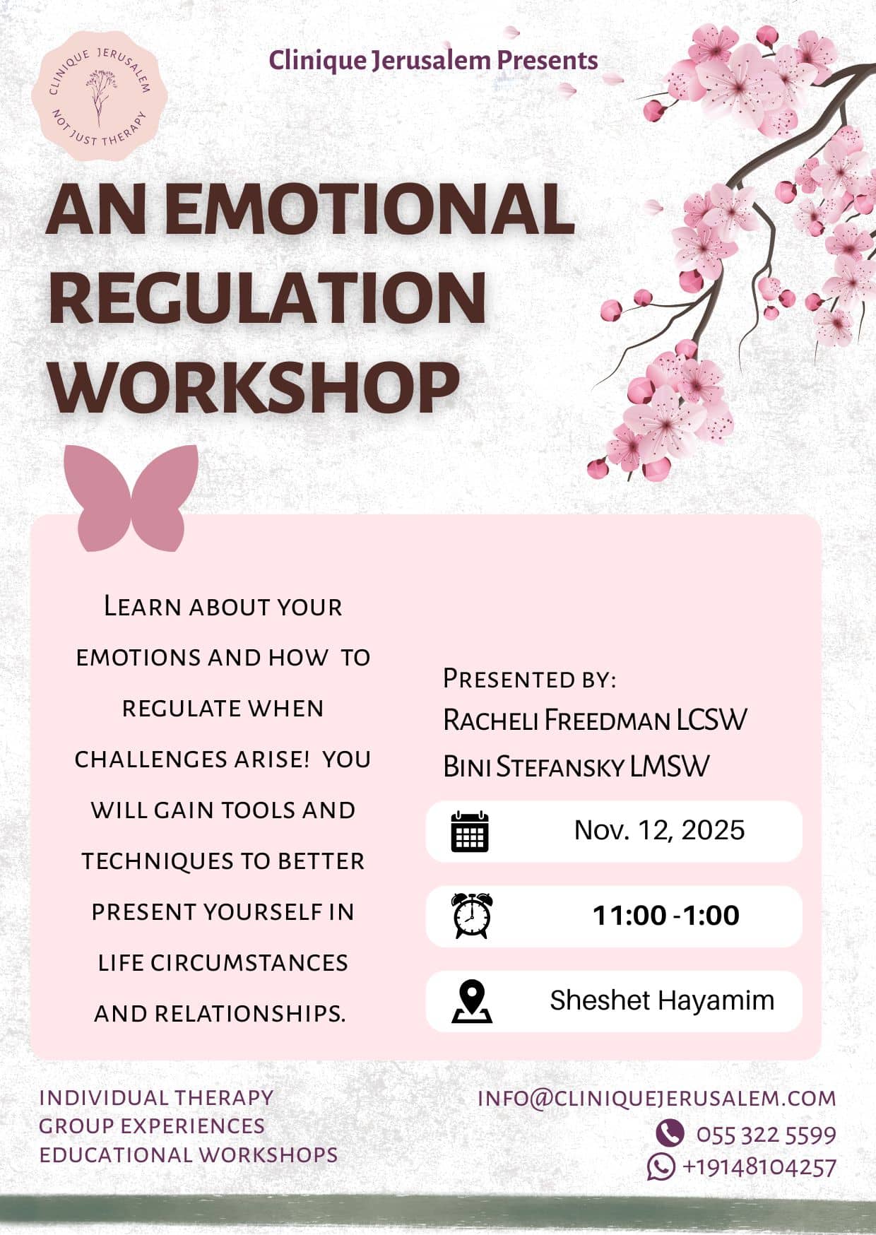 Enjoy a mindfulness pilates workout under Jerusalem's sky! Breathe in the cool night air at our evening classes or soak in the sun during the morning classes! You will leave feeling energized, rejuvenated, and empowered to conquer what's ahead of you! 🗓 November 4th, 11th, 18th & 25th 🕰 Tuesday's at 9:30 AM🌿 4-week series⏱ 1-hour💰 […]