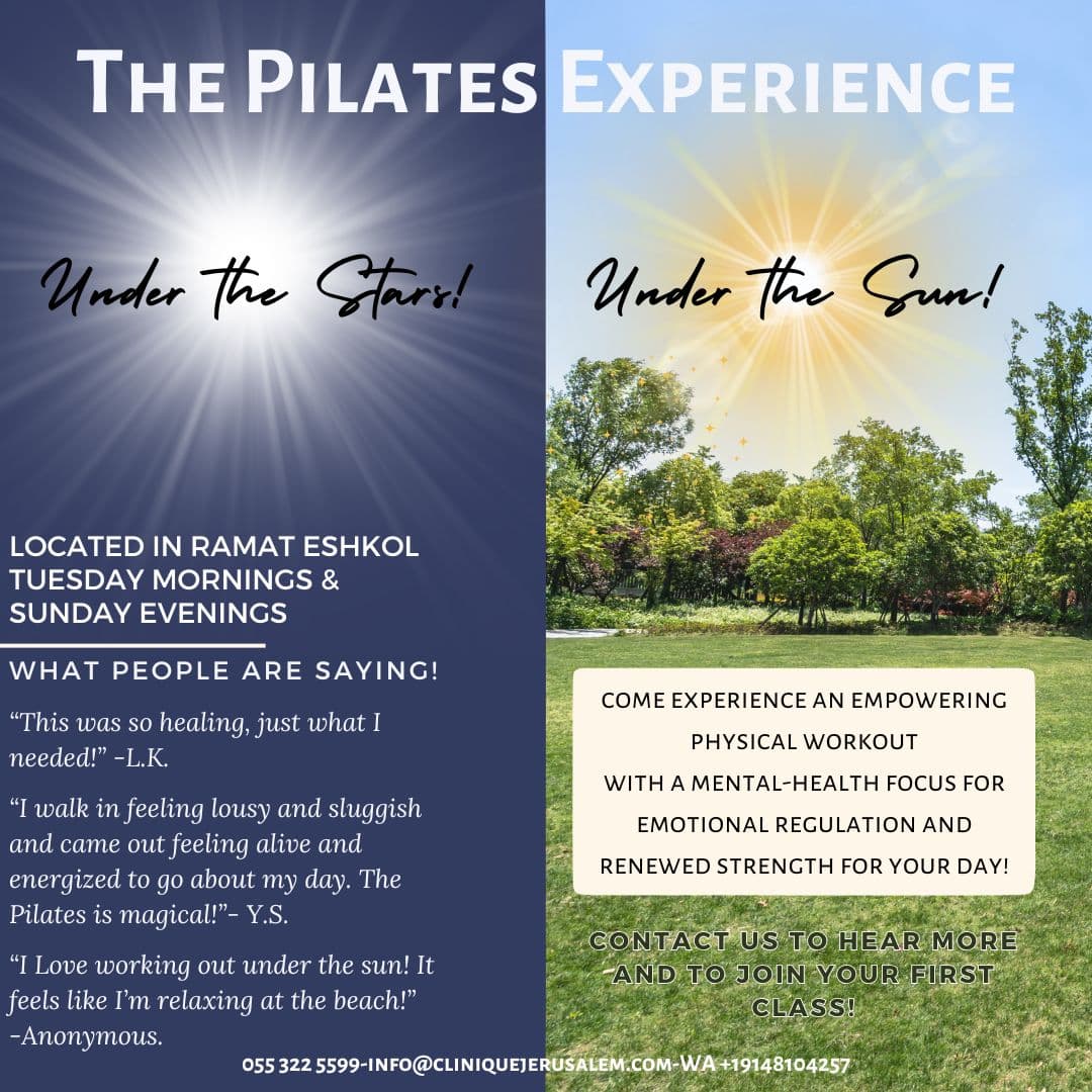 Enjoy a mindfulness pilates workout under Jerusalem's sky! Breathe in the cool night air at our evening classes or soak in the sun during the morning classes! You will leave feeling energized, rejuvenated, and empowered to conquer what's ahead of you! 🗓 November 9th, 16th, 23rd & 30th 🕰 Sunday's at 8:00 PM🌿 4-week series⏱ 1-hour💰 […]